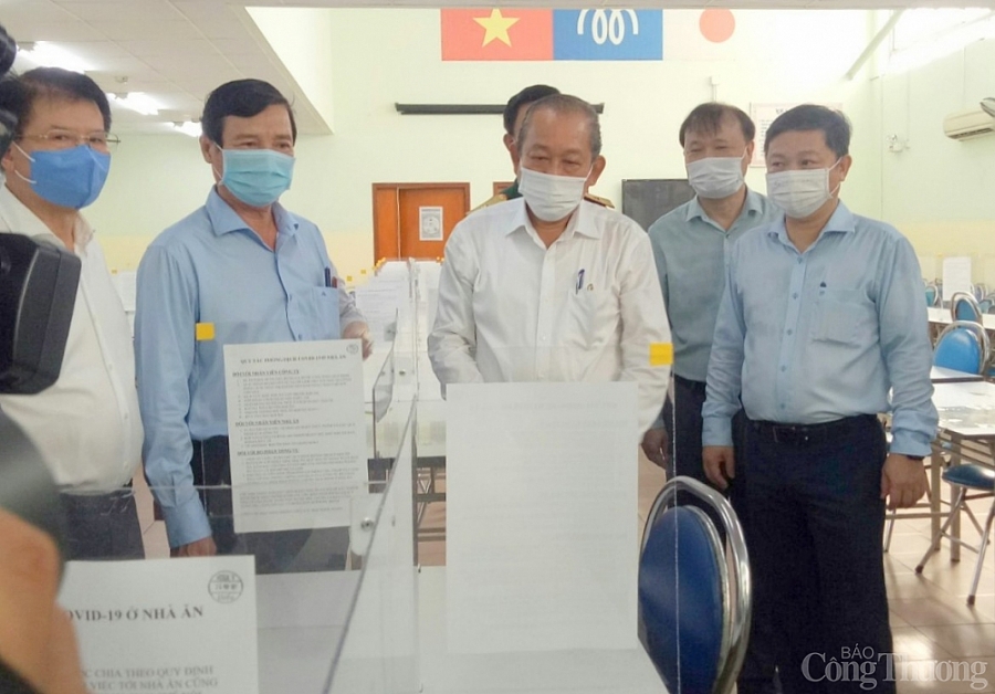 Trực tiếp kiểm tra công tác phòng dịch tại dây chuyền sản xuất, nhà ăn… của 3 DN, Phó Thủ tướng Trương Hòa Bình đều đánh giá cao công tác chủ động phòng, chống dịch Covid-19 của các DN và công nhân lao động. Phó Thủ tướng nhận định, mặc dù các công ty trang bị khá đầy đủ các biện pháp phòng dịch, song công ty cần quyết liệt hơn nữa trong phòng chống dịch, bởi nếu có một ca nhiễm ở đây sẽ rất nguy hiểm.