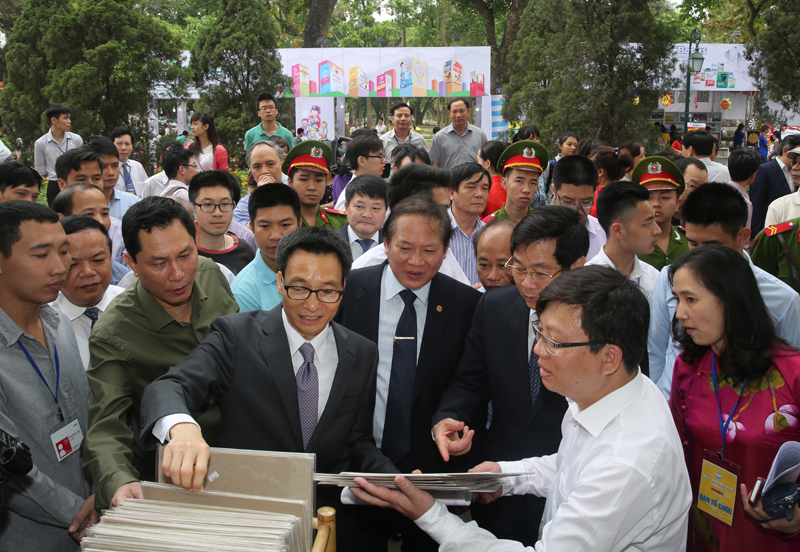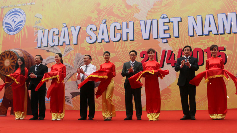 Sáng 17/4, Phó Thủ tướng Vũ Đức Đam đã đến tham quan và cắt băng khai mạc Hội sách chào mừng Ngày Sách Việt Nam 2015 (21/4), tại Công viên Thống Nhất, Hà Nội.