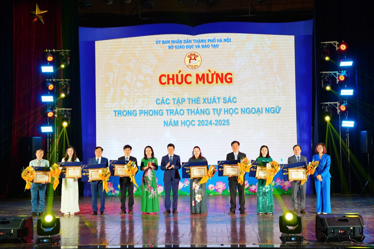Tại Hội nghị Tuyên dương khen thưởng, Sở GD&ĐT Hà Nội đã tặng 42 giấy khen, 129 giấy chứng nhận và thưởng cho 35 tập thể, 136 cá nhân đạt thành tích trong phong trào Tháng tự học ngoại ngữ tại các trường phổ thông năm học 2024 - 2025. Ngoài ra, còn có hơn 1800 cá nhân xuất sắc nhận được quà tặng từ nhà tài trợ.