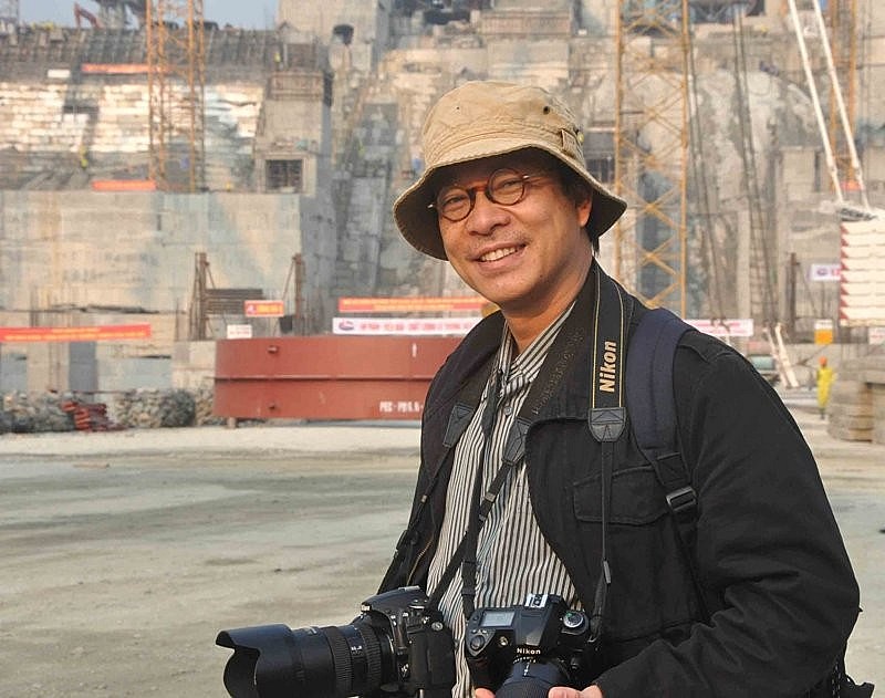 Phóng viên ảnh Cấn Dũng tác nghiệp tại công trường nhà máy Thủy điện Sơn La
