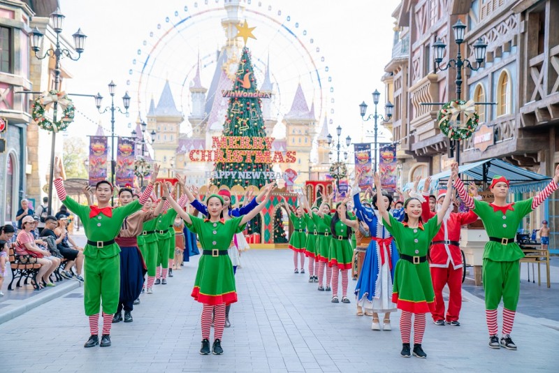 Âm nhạc Maroon 5 vang lên ở mọi ngả đường, banner chào mừng nhóm nhạc huyền thoại xuất hiện khắp nơi, từ “thành phố không ngủ” Grand World đến công viên chủ đề lớn nhất Việt Nam VinWonders, công viên động vật hoang dã Vinpearl Safari, hay trong hệ thống khu nghỉ dưỡng Vinpearl… Hòa cùng âm nhạc là “chiếc áo mới” rực rỡ màu sắc giáng sinh, càng làm tăng thêm sự vui tươi, thư giãn và ấp áp của mùa lễ hội lớn nhất năm.