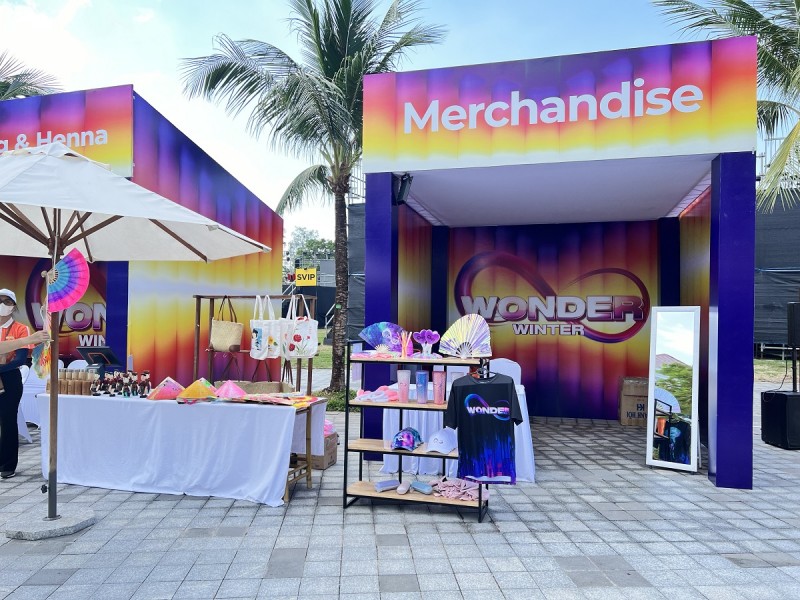 Các gian hàng merchandise, eco shop và các gian hàng ẩm thực cũng đã ráo riết những khâu chuẩn bị cuối cùng, hứa hẹn mang đến những item thời thượng mang đậm dấu ấn của 8Wonders, VinWonders và Vinfast. Loạt quầy ẩm thực đầy màu sắc cũng đã được hoàn thiện, chuẩn bị mang đến cho du khách mỹ vị năm châu tiếp sức khán giả cháy hết mình trong đêm nhạc.