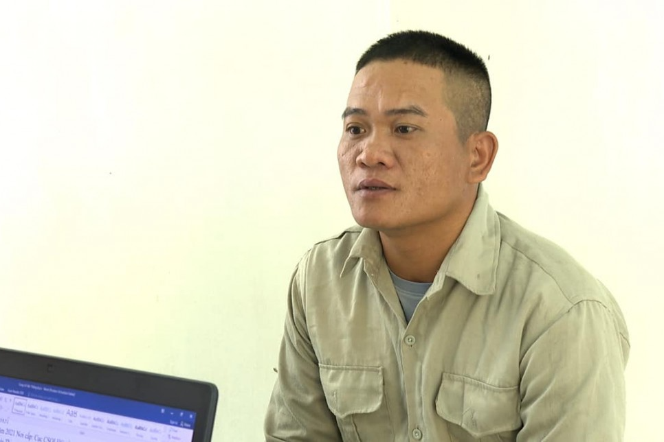 | Đối tượng Lê Văn Thắng tại cơ quan Công an (Ảnh: Công an Phú Thọ). |