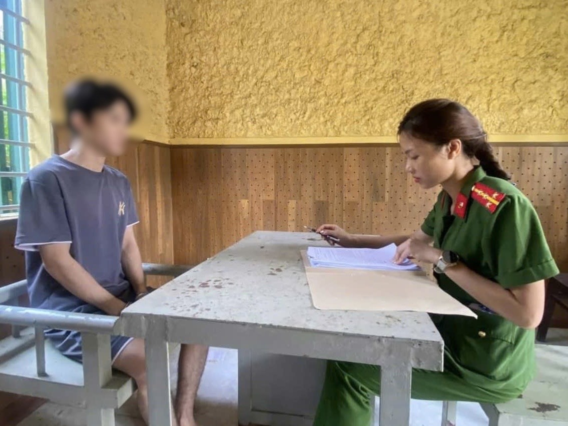 | Tại cơ quan công an, Tài khai nhận đã lập và điều hành nhóm chat zalo "Nhóm Clip Hot VN 18+" với 95 thành viên. Ảnh: Công an tỉnh Phú Thọ |
