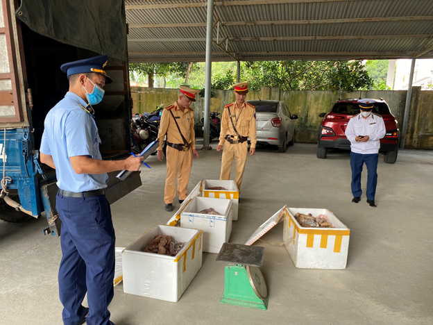 Tiến hành kiểm tra, lực lượng chức năng phát hiện trong thùng xe ô tô có 4 thùng xốp chứa nội tạng động vật đông lạnh chảy nước, bốc mùi hôi thối và biến dạng về màu sắc. Tổng trọng lượng hàng hoá vi phạm khoảng 110kg.