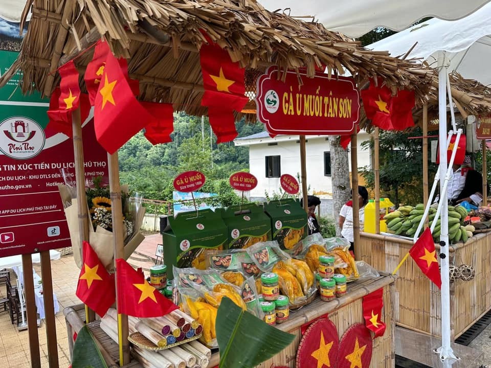 | Nhiều sản phẩm ẩm thực, du lịch địa phương, sản phẩm OCOP được trưng bày, giới thiệu tại sự kiện. Ảnh: Trung tâm thông tin Xúc tiến du lịch Phú Thọ |