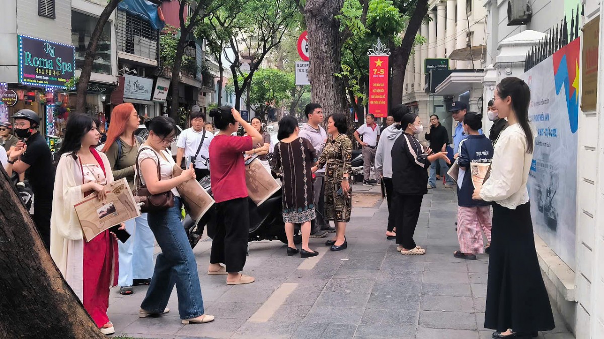 | Phụ trương Báo Nhân Dân trở thành món quà check-in với người dân. Ảnh: QL |