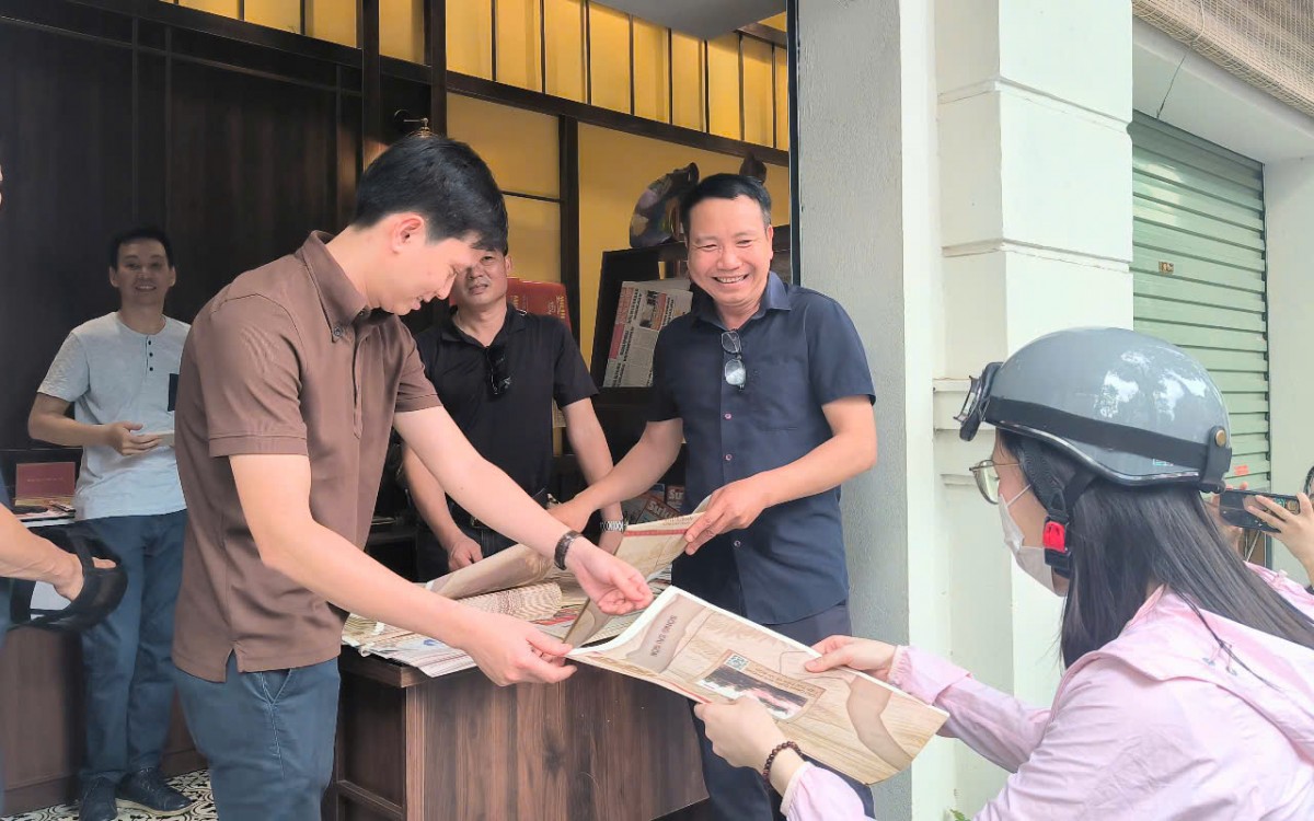 | Bạn đọc hào hứng đến đón nhận ấn phẩm đặc biệt của Báo Nhân Dân. Ảnh: QL |