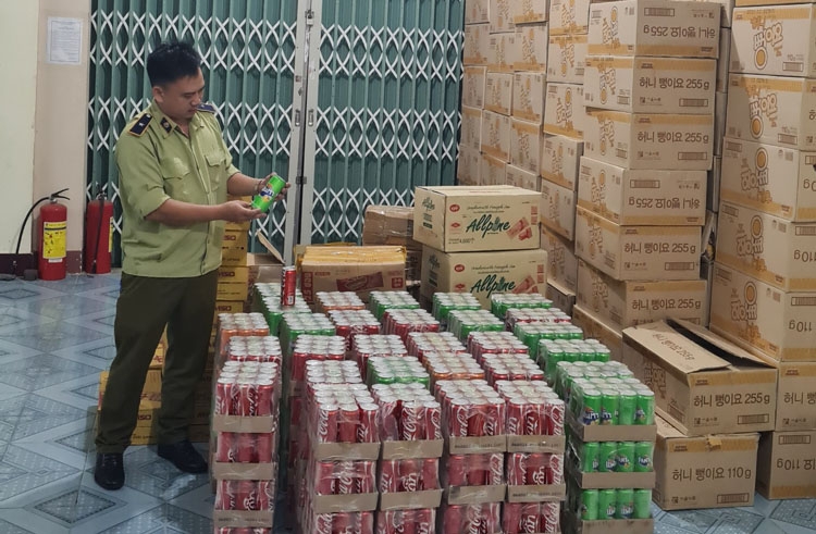 Kết quả khám phương tiện, đoàn kiểm tra tạm giữ 17 mục hàng gồm 480 lon nước ngọt loại 325ml, hiệu Cocacola; 576 lon nước ngọt loại 325ml, hiệu Funta; 95 chai dầu gội các loại; 40 bì bánh các loại; 170 bì kẹo các loại…
