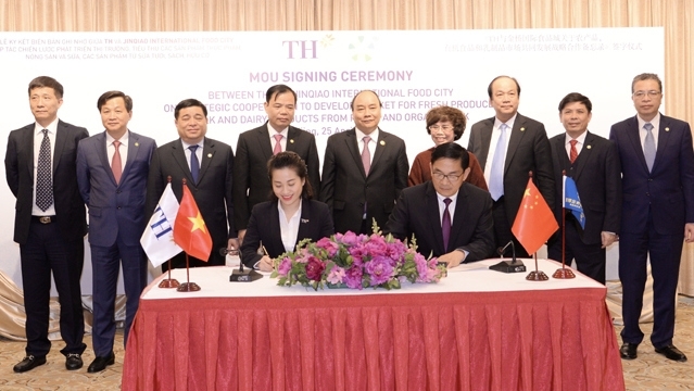 Prime Minister Nguyen Xuan Phuc on April 25 witnessed the signing of a Memorandum of Understanding on strategic cooperation in distributing dairy products between Vietnam’s TH Group and Wuxi Jinqiao International Food City, which owns the largest merchandise wholesale center in China.