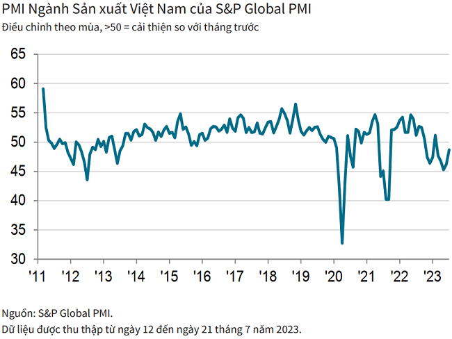 PMI Việt Nam tháng 7/2023 tăng lên mức 48,7 điểm