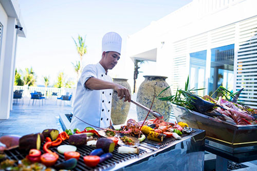Một hệ thống dịch vụ hoàn hảo với tiêu chuẩn quốc tế 5 sao và hơn thế nữa sẽ mang lại kỳ nghỉ dưỡng hài lòng đến từng khoảnh khắc. Nhà hàng Cá Chuồn Cồ, nơi những món ăn Việt và Âu được chính tay nghệ nhân ẩm thực Ánh Tuyết chế biến với sự tinh tế rung cảm vị giác. Nhà hàng Lemon Grass có không gian rộng lớn giao hòa cùng thiên nhiên khiến thực khách đón được những luồng gió mát rượi từ biển xanh bao la. Nếu muốn một không gian ấm cúng như ở nhà, chuyên gia đầu bếp của khu nghỉ dưỡng sẵn lòng phục vụ các buổi tiệc hải sản nướng sang trọng ngay tại biệt thự. Hay muốn một không gian mở độc đáo và tầm nhìn ra bãi biển, hãy thưởng thức một ly cocktails nồng đượm hương vị nhiệt đới tại Nautica beach club với bánh mì, pizza, gà nướng thượng hạng.