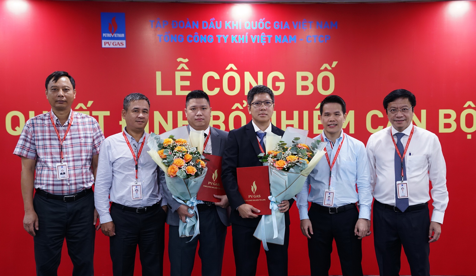 Tại buổi lễ, đại diện lãnh đạo PV GAS đã trao quyết định và tặng hoa chúc mừng 2 cán bộ mới của PV GAS.