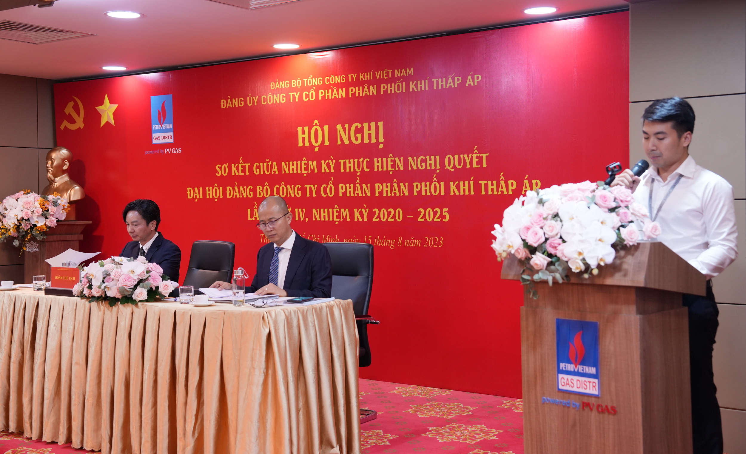 Chủ trì Hội nghị là đồng chí Lê Minh Hải, Bí thư Đảng ủy, Chủ tịch Hội đồng quản trị (HĐQT) và đồng chí Trần Thanh Nam, Phó Bí thư Đảng ủy, Thành viên HĐQT, Giám đốc PV GAS D. Thành phần tham gia Hội nghị có các đồng chí trong Ban Chấp hành Đảng bộ, Ủy ban kiểm tra Đảng ủy, Thành viên HĐQT và Ban Kiểm soát Đảng ủy, Ban Giám đốc, Bí thư và Phó Bí thư các Chi bộ trực thuộc, Chi hội trưởng Hội Cựu chiến binh, Chủ tịch Công đoàn, Bí thư Đoàn Thanh niên và Trưởng, Phó các phòng/đơn vị PV GAS D.