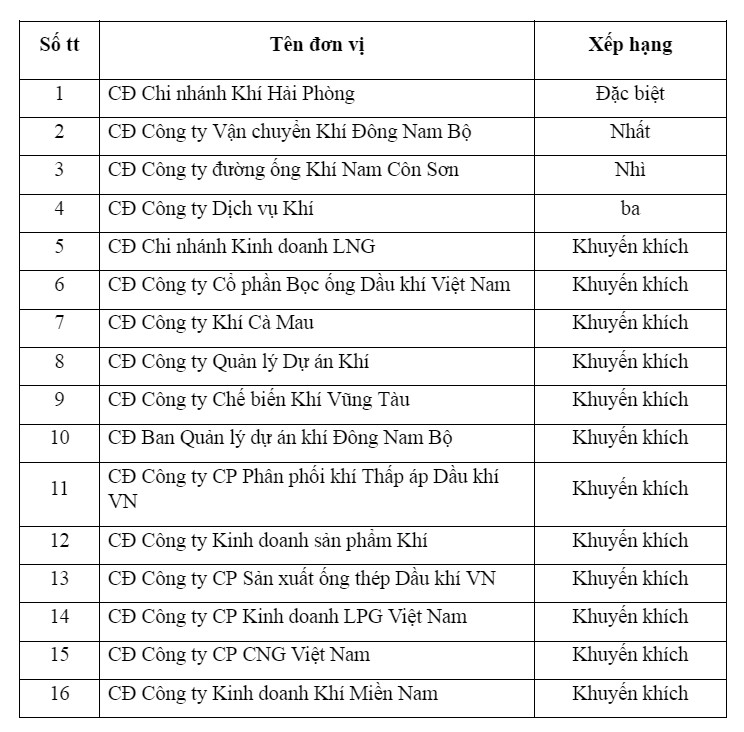 Danh sách xếp hạng tập thể cuộc thể an toàn vệ sinh viên PV GAS - 2022