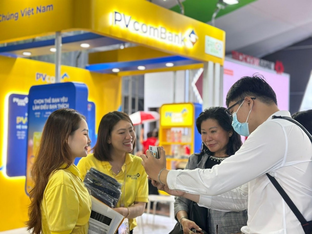 Tham gia GRECO 2024, PVcomBank đã giới thiệu tới khách hàng các sản phẩm, dịch vụ tài chính hiện đại, đáp ứng nhu cầu của thị trường và phù hợp với xu hướng phát triển xanh hiện nay. Trong đó, đội ngũ bán hàng của PVcomBank đã tư vấn, hướng dẫn khách hàng mở thành công tài khoản thanh toán bằng phương thức định danh điện tử eKYC.