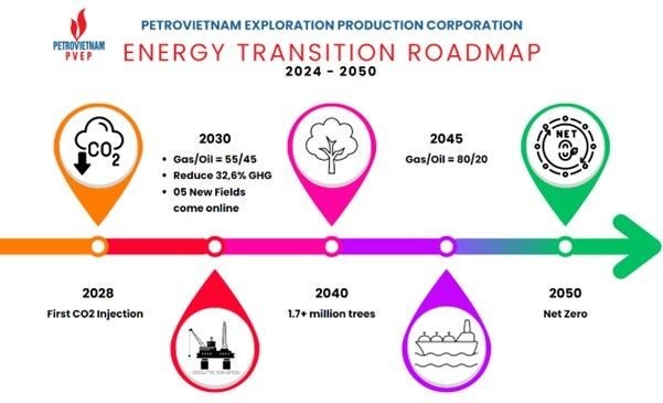 Với vai trò là đơn vị chuyên hoạt động tìm kiếm, thăm dò và khai thác dầu khí, PVEP đã chủ động xây dựng kế hoạch hành động để thích ứng với CDNL. Năm 2021, PVEP đã ban hành Chương trình hành động CDNL và thành lập Ban Chỉ đạo cùng Tổ giúp việc để triển khai, theo dõi thực hiện các nhiệm vụ trong chương trình này. Đến đầu năm 2024, với kinh nghiệm tích lũy từ những công việc đã triển khai từ 2021, PVEP đã cập nhật xu hướng CDNL trên thế giới, đánh giá thế mạnh và nhận diện các rủi ro, để từ đó chính thức ban hành Lộ trình Chuyển dịch năng lượng. Lộ trình đã xác định được mục tiêu và các nhóm giải pháp để PVEP thích ứng với CDNL, với sự nhìn nhận rất rõ ràng về cơ hội và các thách thức trước mắt.