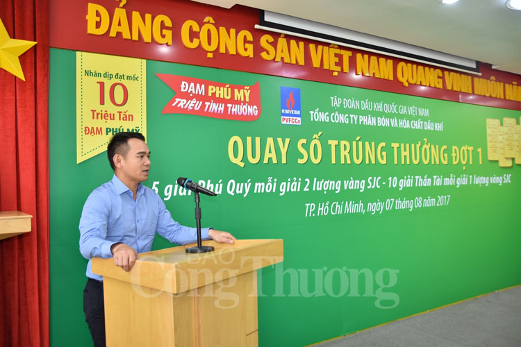 Cụ thể, ngày 7/8, tại TP. Hồ Chí Minh, PVFCCo đã tổ chức quay số đợt 1 cho các tin nhắn gửi thành công và hợp lệ đến tổng đài 8083, từ ngày 15/6-30/7/2017. Đợt quay số công khai, có đại diện các cơ quan chức năng và người tiêu dùng giám sát nhằm tìm ra các khách hàng may mắn trúng thưởng 10 giải “Thần tài”, mỗi giải 1 lượng vàng SJC 9999 và 5 giải “Phú quý”, mỗi giải 2 lượng vàng SJC 9999.