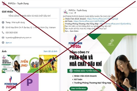 Cụ thể, Petrovietnam và các đơn vị như Vietsovpetro, PVEP đã liên tiếp nhận được thông tin tố cáo về các đối tượng mạo danh, thực hiện hành vi lừa đảo thông qua các dự án giả mạo và trang web có tên miền gần giống với các trang chính thức. Vấn đề không chỉ dừng lại ở đó, mà gần đây, các fanpage giả mạo trên mạng xã hội Facebook xuất hiện, giả danh thương hiệu của PV GAS, PVFCCo để đăng thông tin tuyển dụng và lừa đảo người tìm việc.
