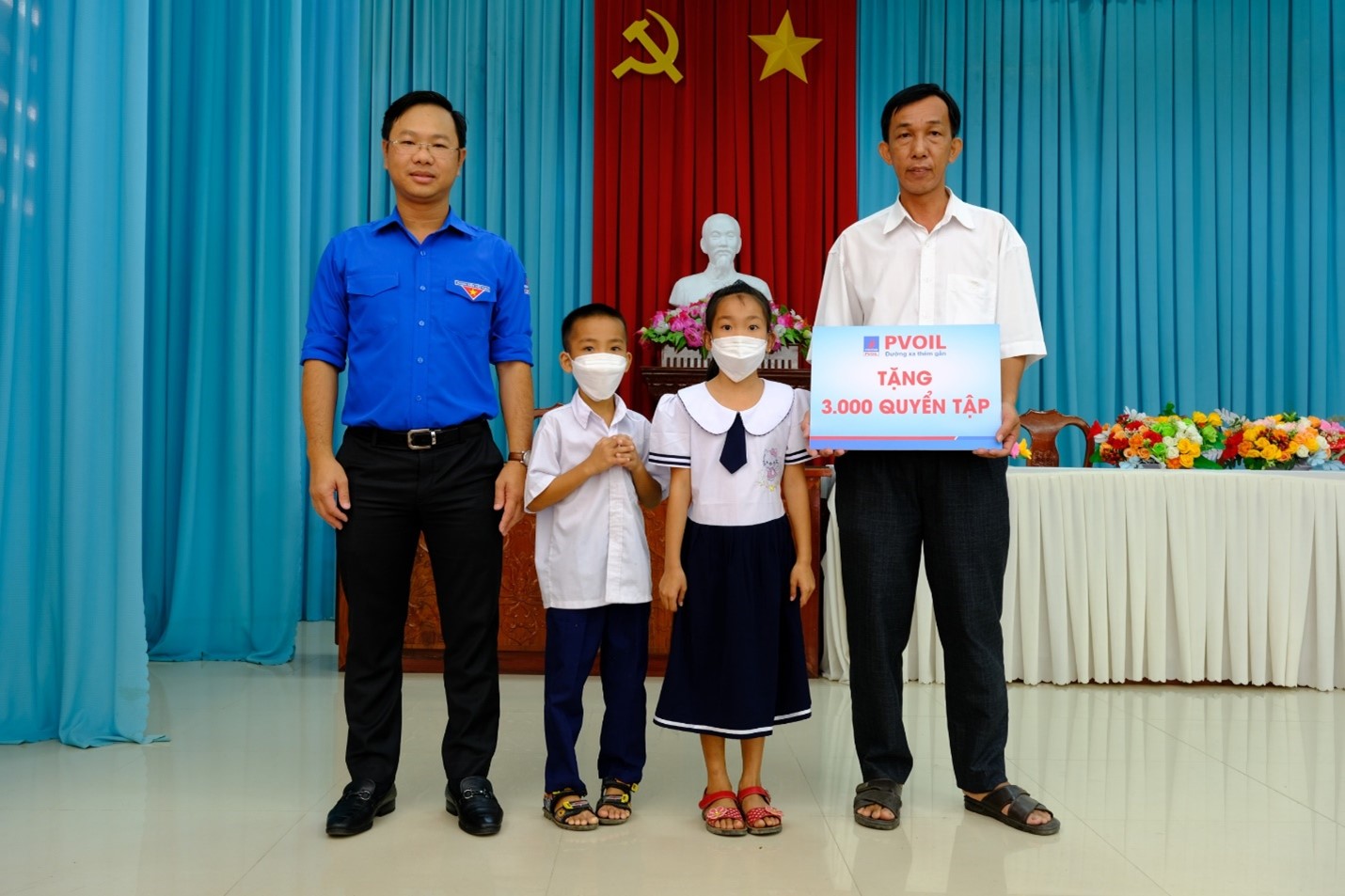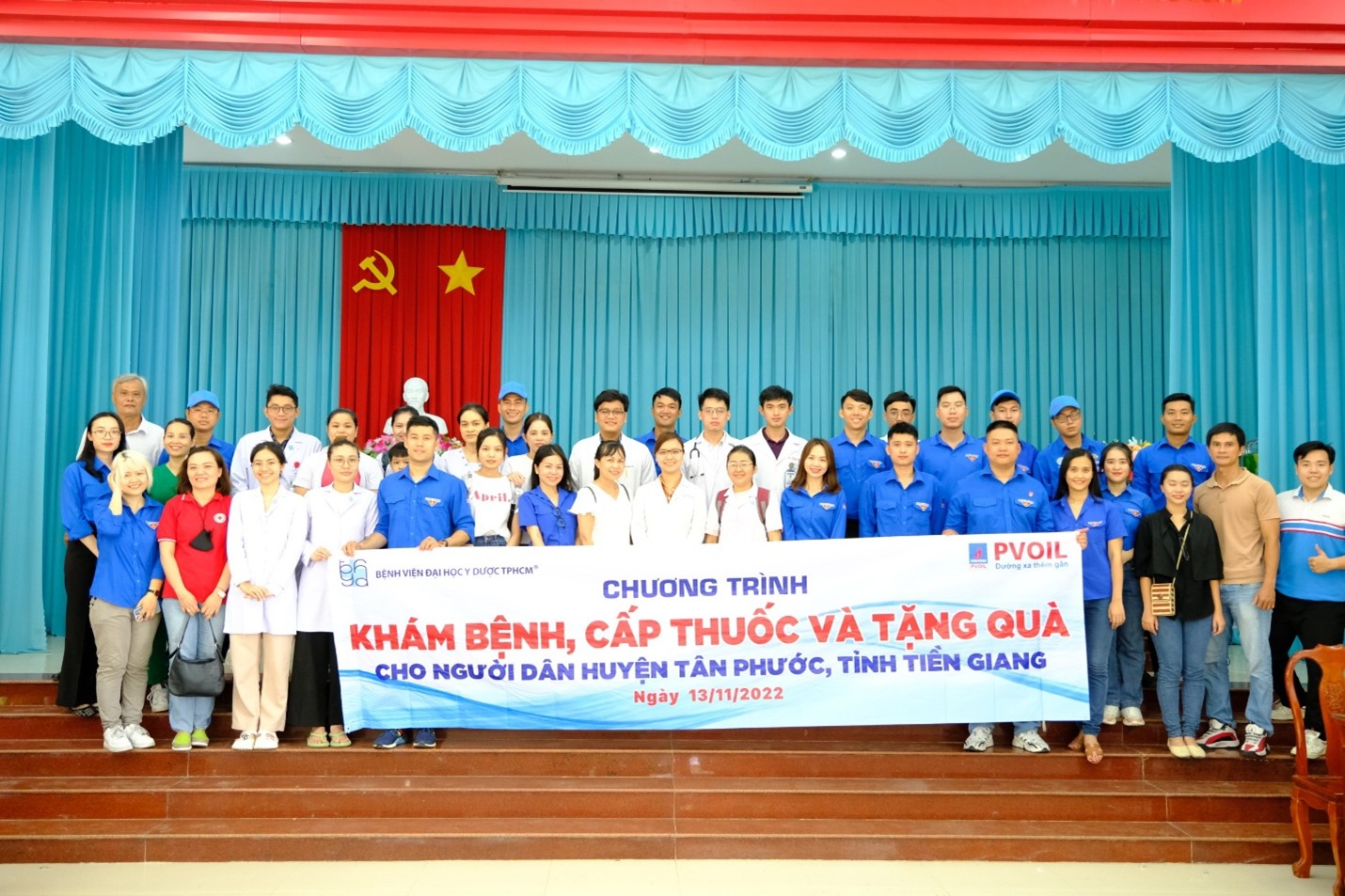 Trong chương trình, Đoàn Thanh niên Tổng công ty Dầu Việt Nam (PVOIL) phối hợp với Bệnh viện Đại học Y dược TP. Hồ Chí Minh tổ chức khám bệnh, phát thuốc cho 500 người dân có hoàn cảnh khó khăn. Bên cạnh đó, PVOIL tặng 500 phần quà gồm gạo, đường, dầu ăn; tặng 3.000 quyển tập cho các em học sinh Trường tiểu học Phú Mỹ (xã Phú Mỹ, huyện Tân Phước).