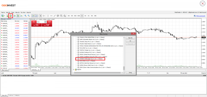 - Truy cập nền tảng giao dịch, chọn mã cổ phiếu của Volkswagen là VOWDE.