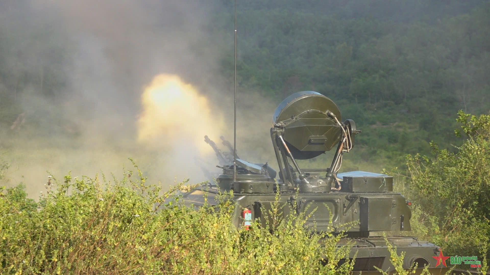 | Pháo phòng không 57mm nổ súng tiêu diệt mục tiêu. Clip: Tuấn Huy |