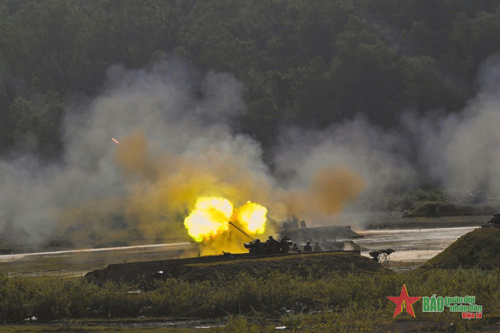 | Trận địa pháo 57mm thực hành tiêu diệt mục tiêu |