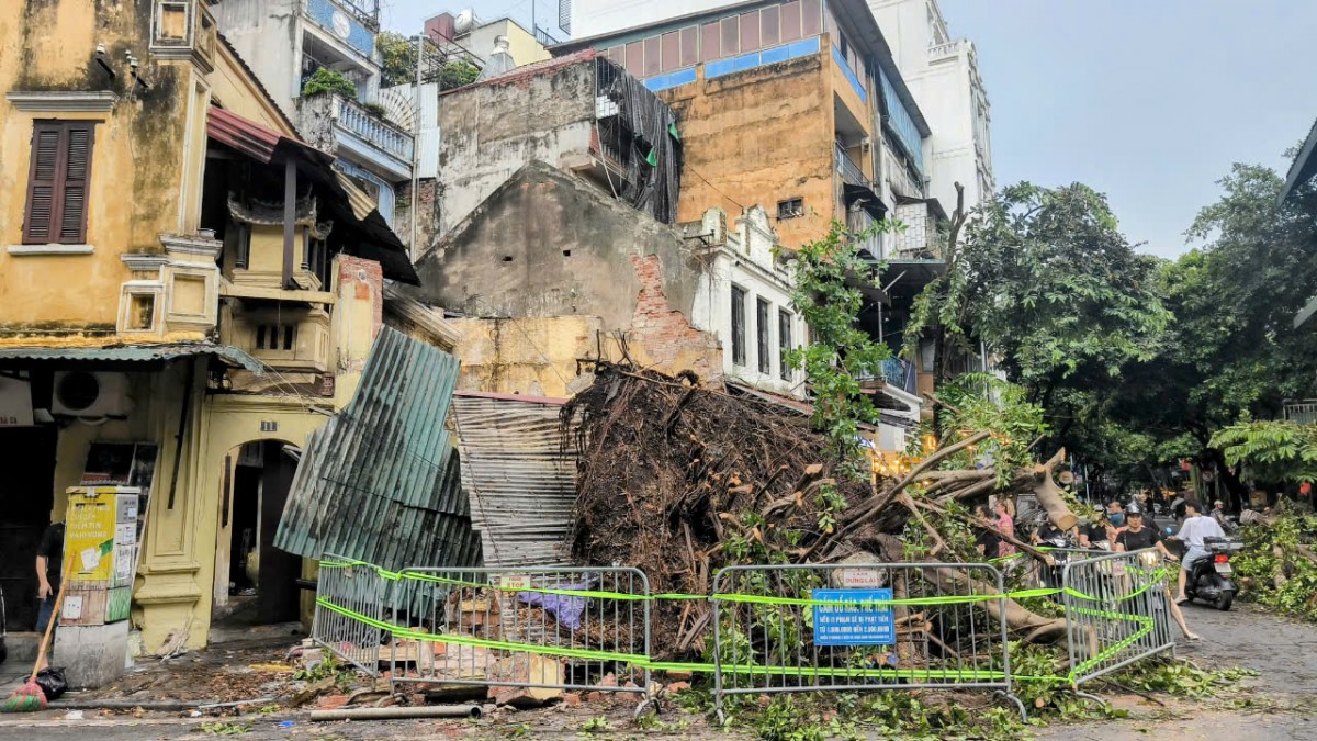 Tuy nhiên lãnh đạo sở tại của quận Hoàn Kiếm, Hà Nội là phường Hàng Đào khẳng định hoàn toàn không có sự việc “sập nhà” do mưa giông.