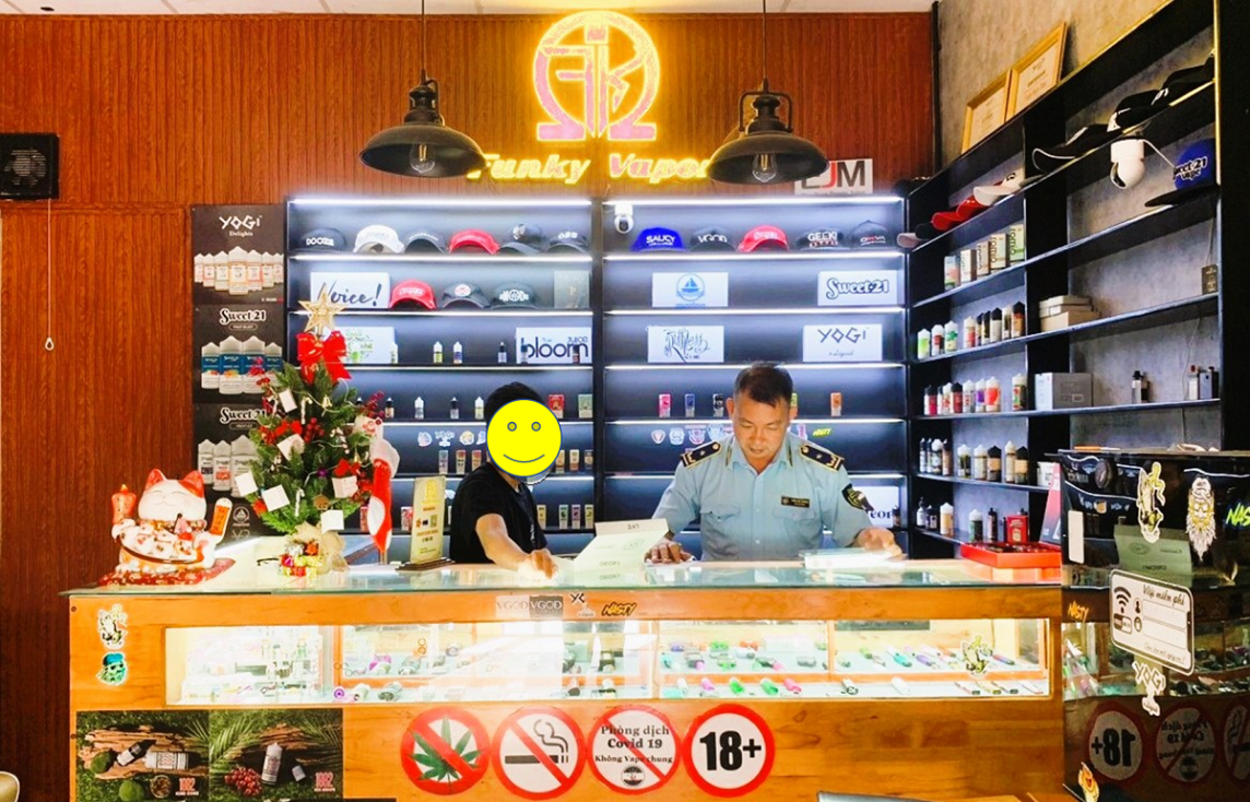 | Quản lý thị trường tỉnh Bình Phước kiểm tra tại hộ kinh doanh thuốc lá điện tử (Ảnh: Cục Quản lý thị trường tỉnh Bình Phước). |