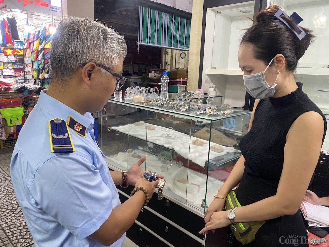 Chiều tối ngày 31/10, Cục Nghiệp vụ Quản lý thị trường (Tổng cục Quản lý thị trường) phối hợp với Cục Quản thị trường TP. Hồ Chí Minh tổ chức kiểm tra các quầy bán đồng hồ, túi xách có dấu hiệu giả mạo nhãn hiệu tại chợ Bến Thành, thuộc phường Bến Thành, quận 1, TP. Hồ Chí Minh.