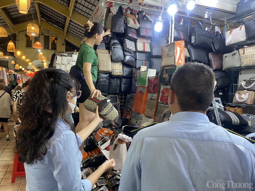 | Lực lượng Quản lý thị trường đã tổ chức kiểm tra 6 cơ sở kinh doanh tại chợ Bến Thành. Ảnh: Sỹ Đồng |