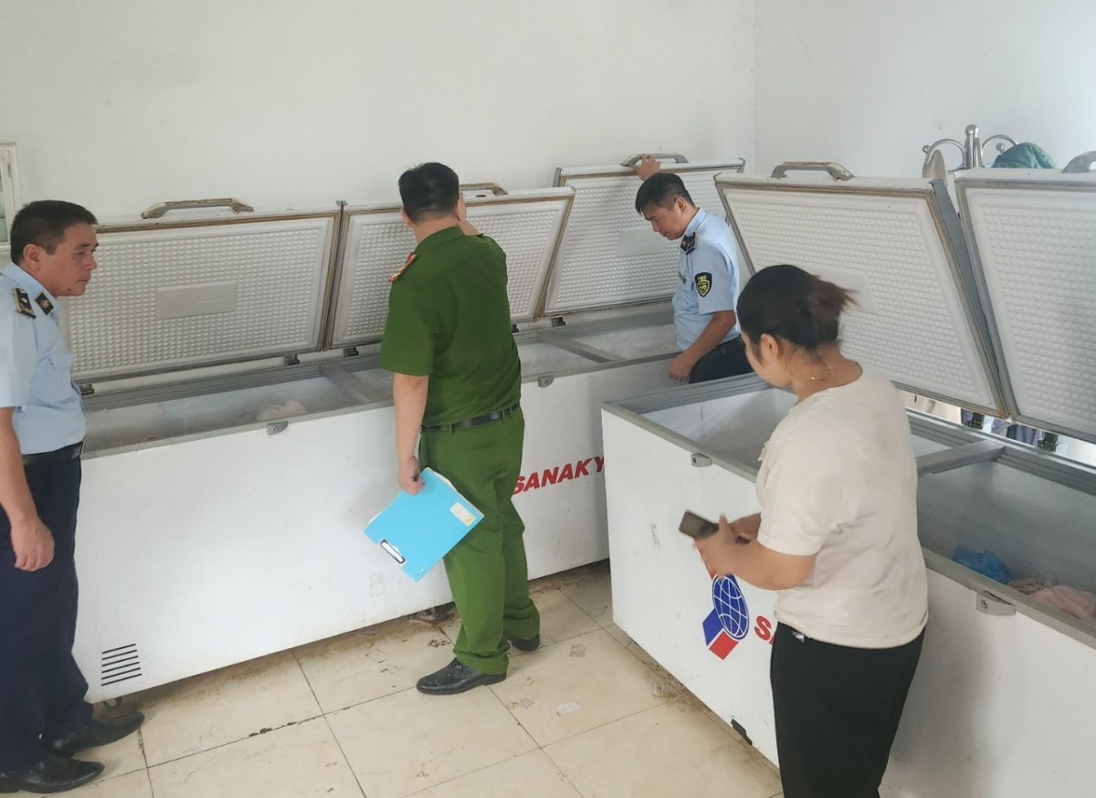 | Lực lượng chức năng kiểm tra một cơ sở kinh doanh thực phẩm trên địa bàn TP. Tam Điệp, tỉnh Ninh Bình. Ảnh: Quản lý thị trường Ninh Bình |