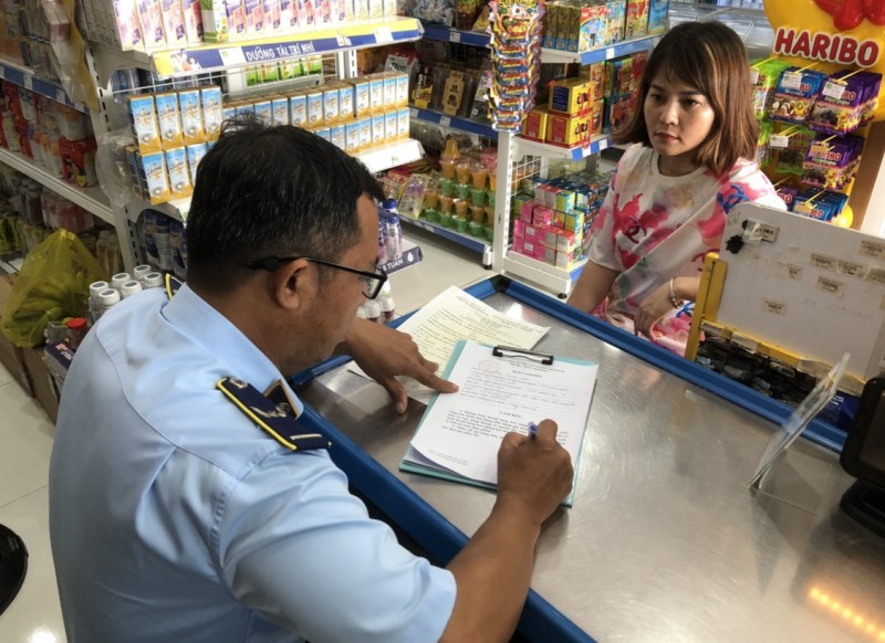| Công chức Quản lý thị trường làm việc với một cơ sở kinh doanh trên địa bàn |