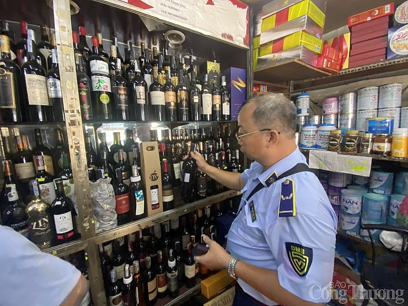 | Lực lượng quản lý thị trường kiểm tra mặt hàng rượu tại một cửa hàng trên đường Nguyễn Thông, quận 3. |
