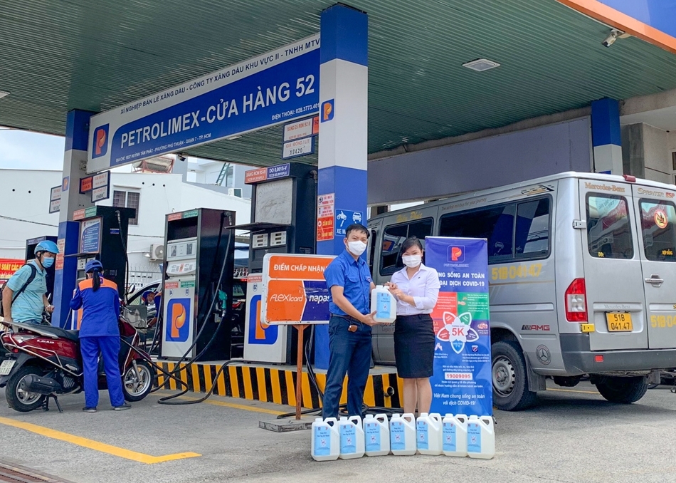 | Đoàn thanh niên Petrolimex Sài Gòn phối hợp với Phòng Hóa nghiệm Trung tâm tổ chức pha chế dung dịch rửa tay sát khuẩn phân phát đến các đơn vị trực thuộc sử dụng |