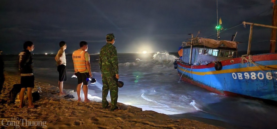 Đồn Biên phòng Nhật Lệ cử lực lượng đến hiện trường động viên và phối hợp với gia đình, địa phương hỗ trợ ngư dân kéo phương tiện ra khỏi vị trí mắc cạn, mang vật chất và trang thiết bị lên bờ để tránh bị hư hỏng gây thêm thiệt hại cho ngư dân.