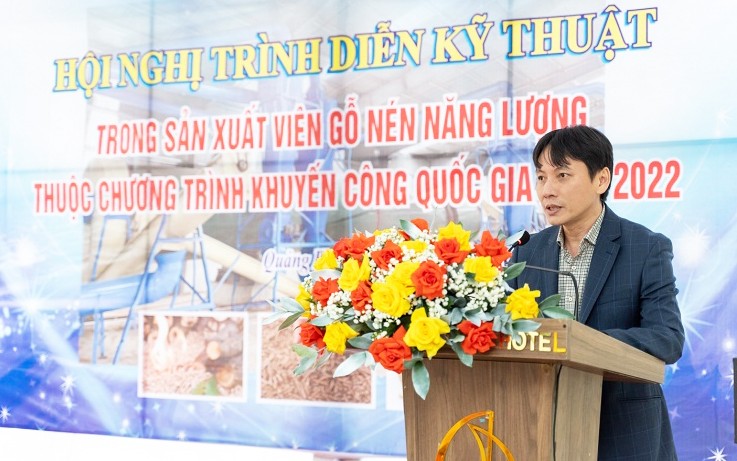 Tại hội nghị, đại điện Công ty Đức Quân đã báo cáo kết quả thực hiện đề án mô hình trình diễn kỹ thuật trong sản xuất viên gỗ nén năng lượng. Dự án đầu tư của công ty bắt đầu triển khai thực hiện từ đầu năm 2022, công ty tiến hành xây dựng nhà xưởng, lắp ráp hoàn thiện dây chuyền sản xuất viên gỗ nén năng lượng với tổng mức đầu tư trên 40 tỷ đồng.