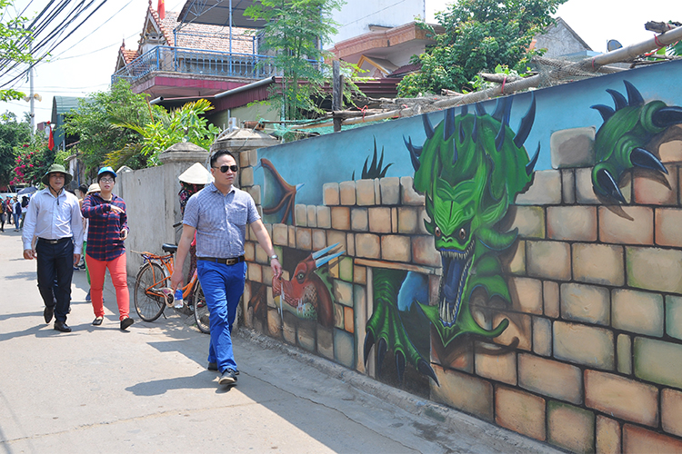 | Con đường bích họa dẫn vào làng chài Cảnh Dương hấp dẫn du khách |