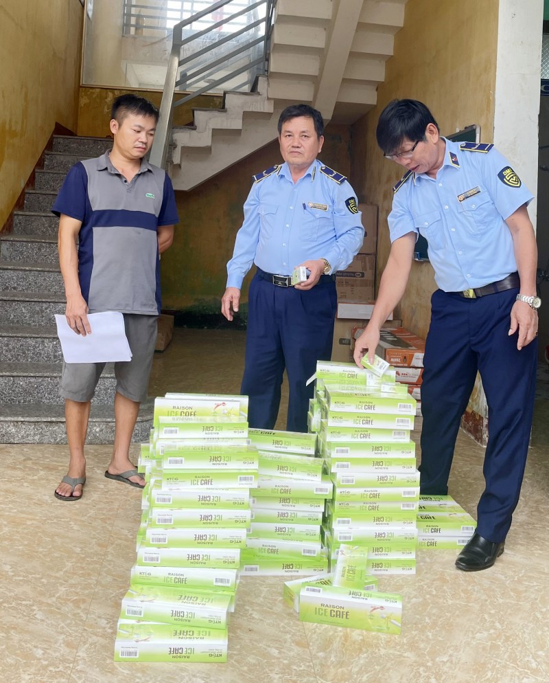 | Lô thuốc lá điếu hiệu RAISON ICE CAFÉ bị thu giữ (Ảnh: Cục QLTT tỉnh Quảng Bình) |