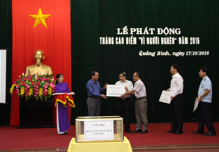 Theo báo cáo của Ban vận động “Ngày vì người nghèo” tỉnh Quảng Bình, tính đến ngày 30/9/2016, tổng Quỹ vì người nghèo cả 3 cấp đã vận động, tiếp nhận ủng hộ số tiền hơn 12 tỷ đồng. Theo đó, từ nguồn Quỹ vì người nghèo, đã có hàng trăm hộ nghèo, hộ có hoàn cảnh khó khăn được hỗ trợ xây dựng, sửa chữa nhà ở với tổng số tiền hơn 3 tỷ đồng; hơn 220 hộ nghèo được giúp đỡ trên 750 triệu đồng phát triển sản xuất và hàng ngàn hộ nghèo, trẻ em nghèo được khám chữa bệnh miễn phí, được tiếp sức đến trường...