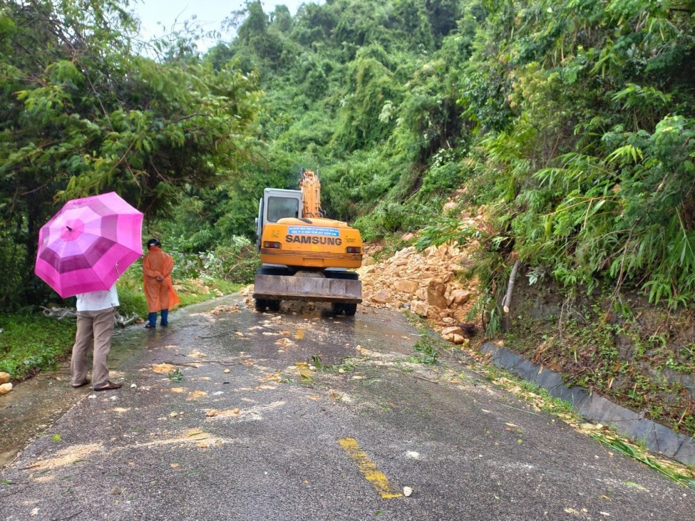 | Điểm sạt lở tuyến đường ĐT611 tại Km24+700 đèo Le |