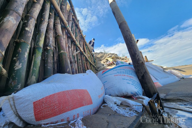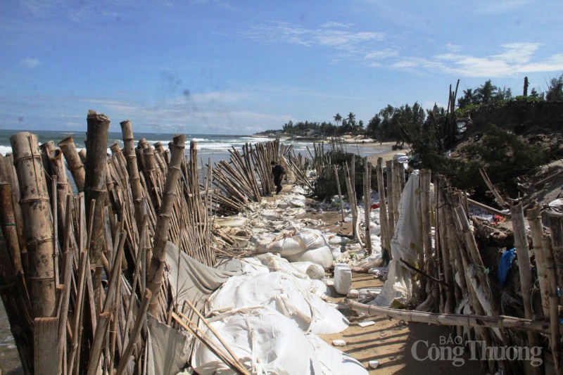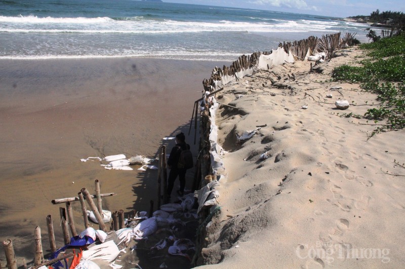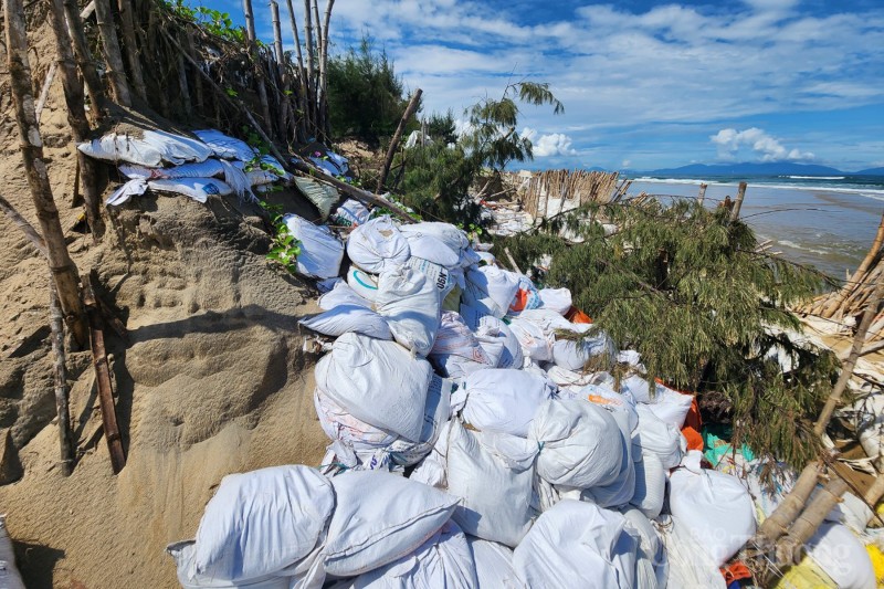 Sóng lớn liên tục "ngoạm" sâu vào đất liền khiến hàng trăm mét bờ biển Hội An (tỉnh Quảng Nam) rơi vào tình trạng sạt lở nghiêm trọng.