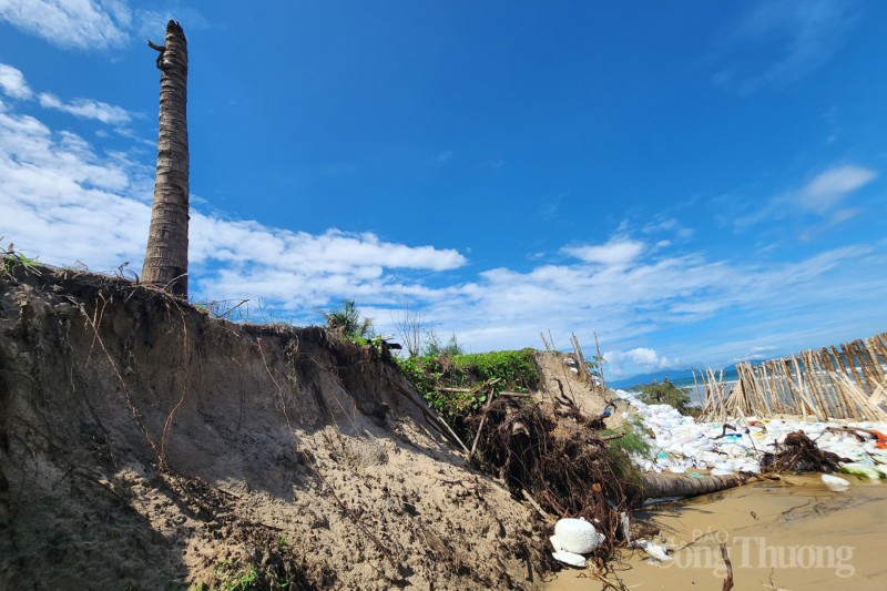 Nước biển "ngoạm" sâu vào bờ khiến tình trạng sạt lở chưa có dấu hiệu dừng lại |