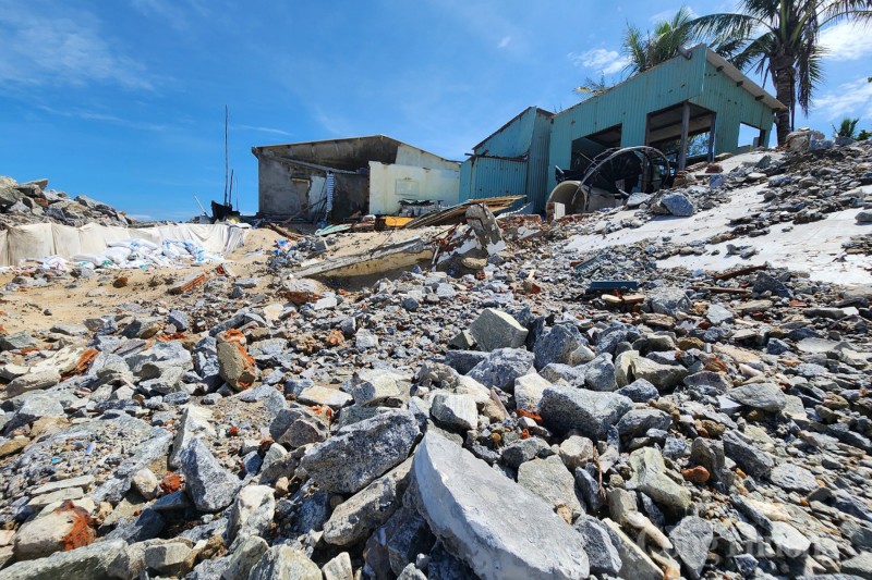 Những nhà dân dọc bờ biển Hội An bị sóng đánh đổ sập |