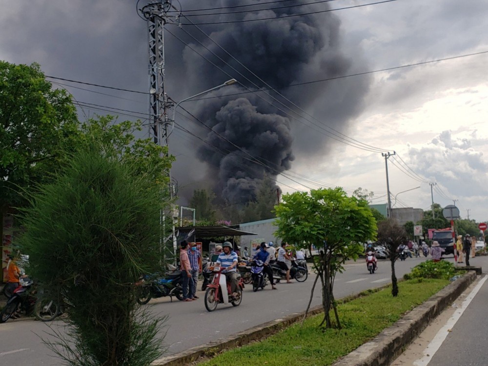 Đại tá Lê Trung Hai - Trưởng Công an thị xã Điện Bàn (tỉnh Quảng Nam) cho biết, "Ngọn lửa bốc cháy và lan nhanh suốt nhiều giờ, lực lượng chức năng vẫn đang nỗ lực tiếp cận và dập lửa, chưa thể thống kê thiệt hại".