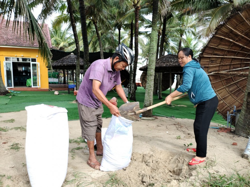 | Người dân Quảng Nam xúc cát, chằng chống nhà cửa ứng phó bão số 4 |