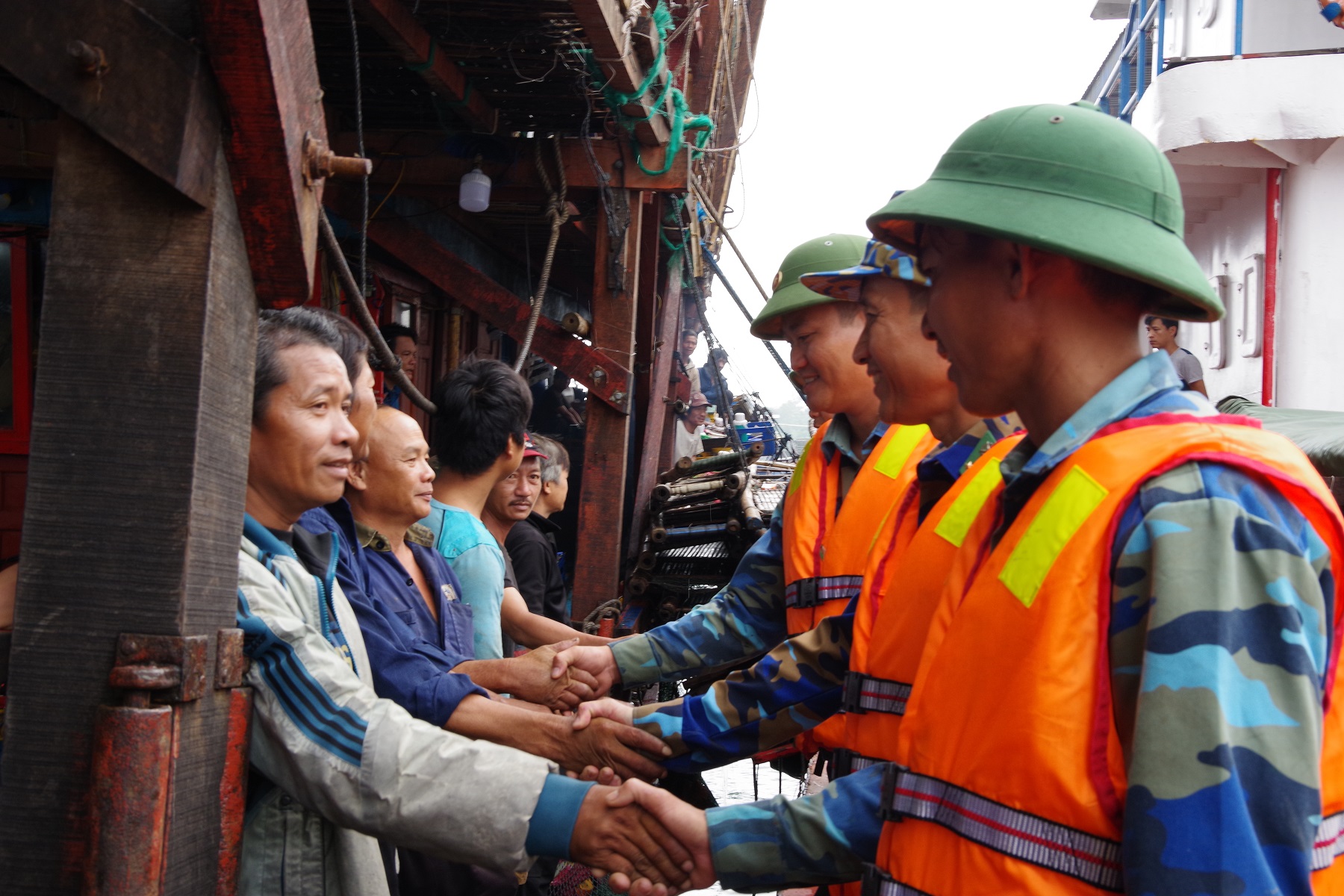 | Các ngư dân bắt tay và gửi lời cảm ơn đến lực lượng cứu hộ |