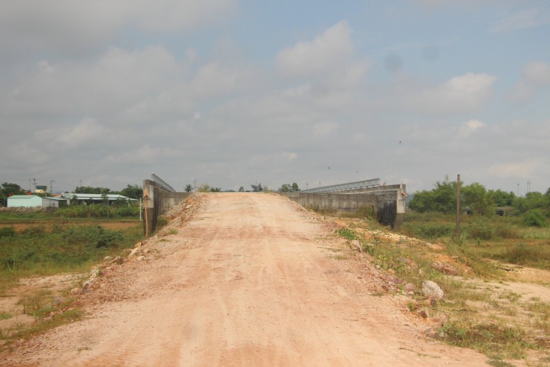 | Đường dẫn lên cầu Tây An 1 vẫn chưa được đắp đất nền |