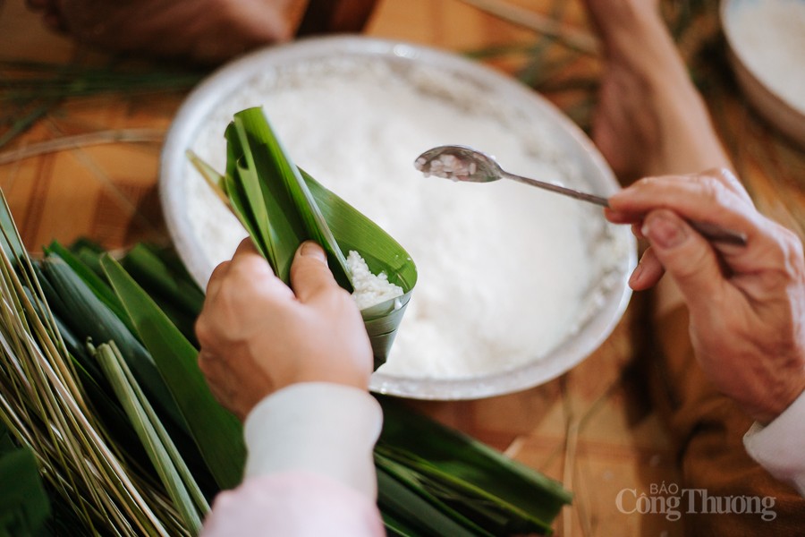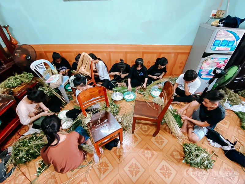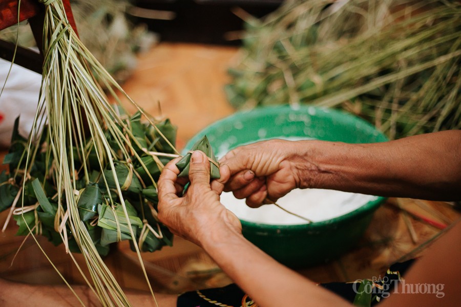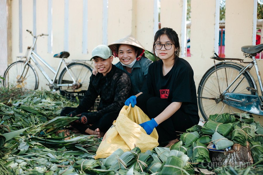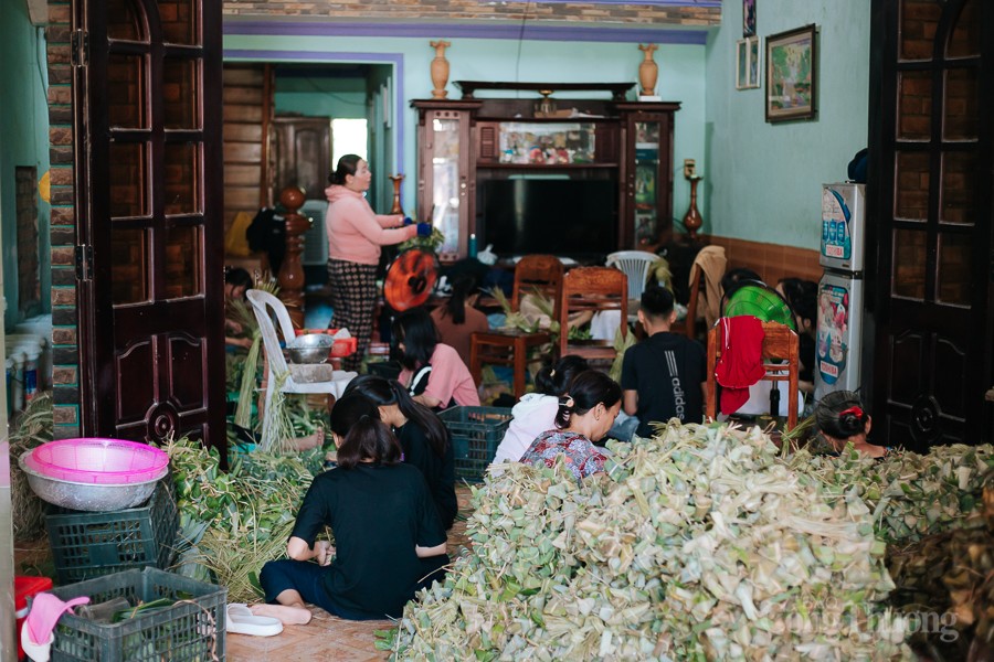 | Công đoạn chuẩn bị lá gói, chuẩn bị nguyên liệu tới gói bánh, nấu bánh đòi hỏi sự công phu, tỉ mỉ, khéo léo. |
