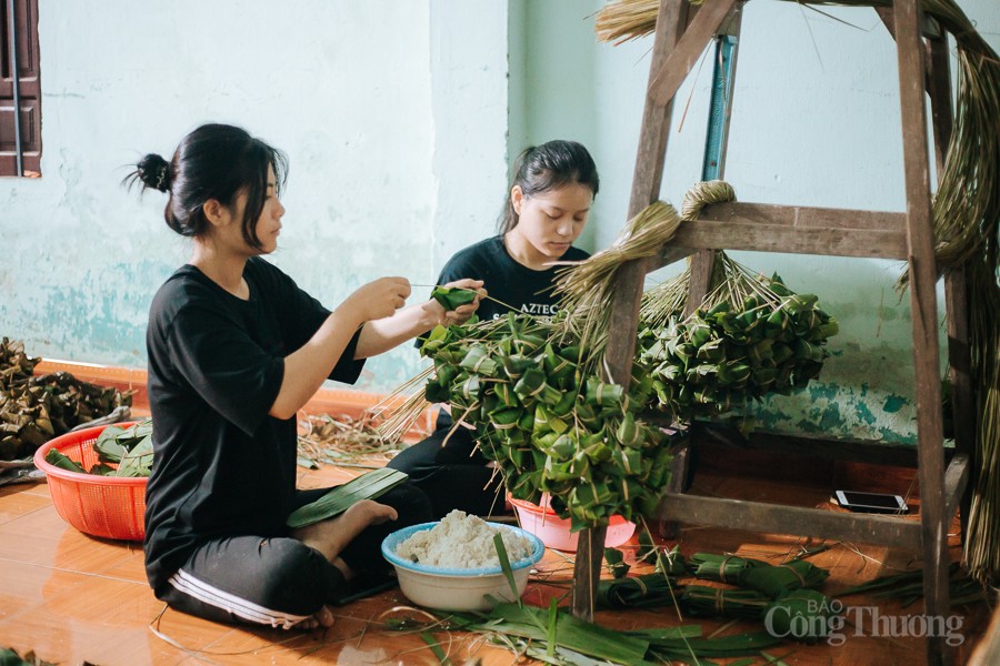 | Các cơ sở đã “huy động” tối đa thợ gói bánh để có thể cung ứng đủ số lượng bánh ra thị trường. Đa phần những thợ bánh này là bà nội trợ, các bạn học sinh, sinh viên nghỉ hè kiếm thêm thu nhập. Việc gói bánh tuy chỉ diễn ra trong vài ngày nhưng đã tạo nguồn thu nhập khá cho các thợ gói bánh. Trung bình mỗi thợ sau dịp Tết Đoan Ngọ kiếm được từ 2-3 triệu đồng. |